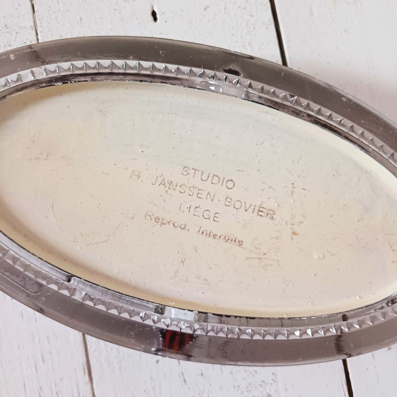 Ce rare cendrier en verre présente une publicité pour le genièvre Postillon. À la lecture du nom, on pourrait penser aux vins Postillon français, mais il semble plutôt s’agir d’une production belge, possiblement réalisée pour un bistrot portant ce nom. Aucun document ne permet pour l’instant de confirmer l’origine exacte de ce genièvre, ce qui ajoute une part de mystère à l’objet. Le fabricant du cendrier étant liégeois, la piste belge est crédible. Quoi qu’il en soit, il s’agit d’un très bel objet publicitaire ancien, au graphisme soigné et à l’histoire encore partiellement méconnue, parfait pour les collectionneurs de curiosités ou de publicités liées aux spiritueux.