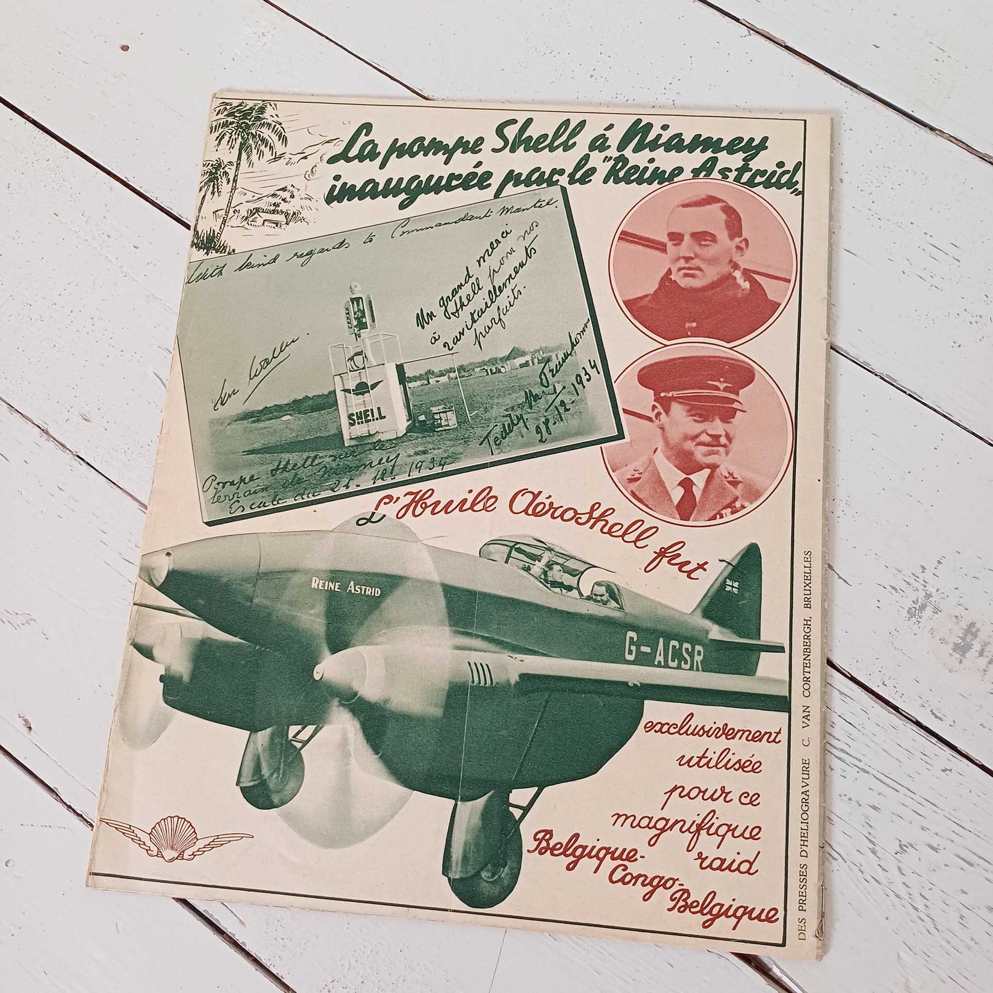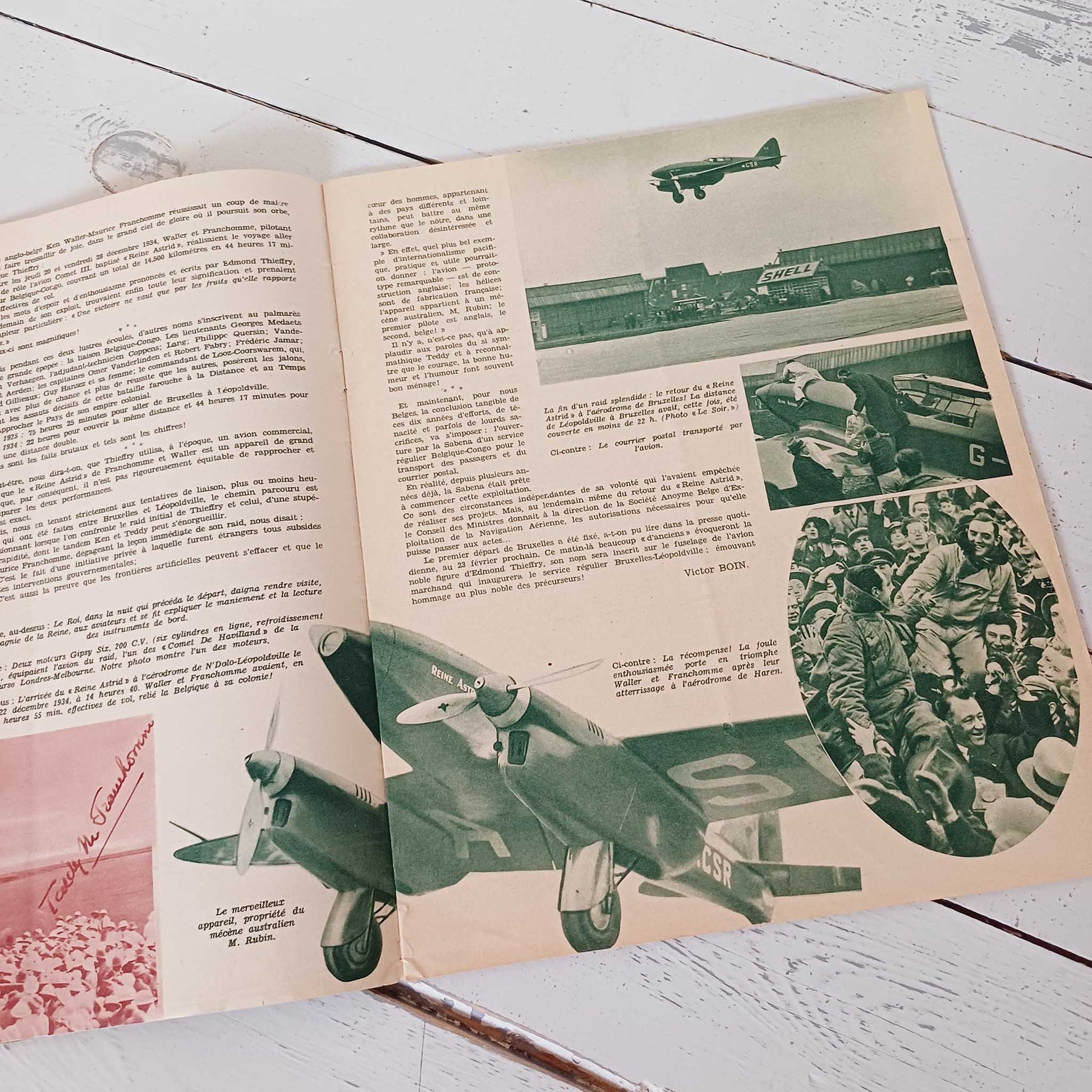 On y découvre notamment un article consacré à l’avion “Reine Astrid” et à son incroyable raid Belgique–Congo–Belgique, ainsi qu’une magnifique publicité pour un bidon conique Shell.